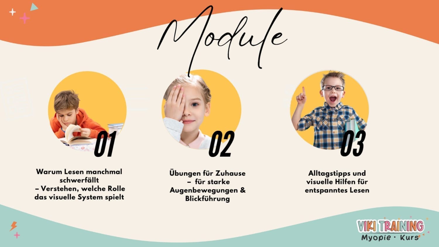 Wir haben so viel geübt und nichts hat geholfen. Erst durch den Kurs habe ich verstanden, dass seine Augen einfach überfordert waren. Die Übungen tun ihm richtig gut – und unser Hausaufgabenstress hat sich halbiert."